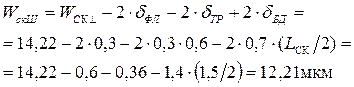 Номинальный поперечный размер базы с учетом случайных ошибок и боковой диффузии: