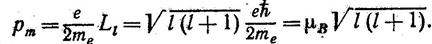 Таким образом, магнитный момент электрона может содержать [ l(l + l)]1/2 магнетонов Бора.