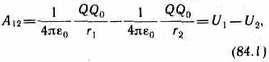 Работа, совершаемая силами электростатического поля при перемещении заряда Q 0 из точки 1 в точку 2 (см. (84.1), (84.4), (84.5)), может быть представлена как