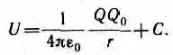 Она, как и в механике, определяется не однозначно, а с точностью до произвольной постоянной С. Если считать, что при удалении заряда в бесконечность (r ->¥) потенциальная энергия обращается в нуль (U =0), то С =0 и потенциальная энергия заряда Q 0, находящегося в поле заряда Q на расстоянии r от него, равна