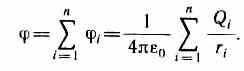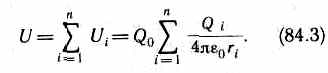 Из формул (84.3) и (84.4) вытекает, что если поле создается несколькими зарядами, то потенциал поля системы зарядов равен алгебраической сумме потенциалов полей всех этих зарядов: