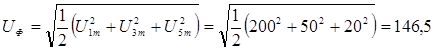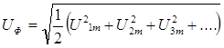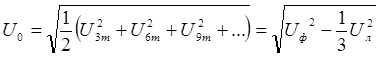- действующее значение всех гармоник нулевой последовательности. В реальных трехфазных цепях четные гармоники, как правило, отсутствуют вообще, а амплитуда 9-й гармоники незначительна, поэтому можно приближенно считать, что U 0 » U 3 , и U 3 m »