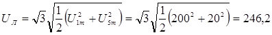 Линейные напряжения равны разности соответствующих двух фазных напряжений, например uAB = uA - uB. Как следует из векторных диаграмм рис. 9 амплитуды линейных напряжений для гармоник прямой и обратной последовательностей в