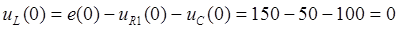 Пример. Определить независимые начальные условия iL (0), uC (0) в схеме рис. 129 при заданных значениях параметров элементов: R 1=50 Ом, L =100 мГн, R 2=100 Ом, C =50мкФ, а)для постоянной ЭДС e (t)= E =150 В = const; б)для синусоидальной ЭДС e (t)=150sin ωt, f =50 Гц.