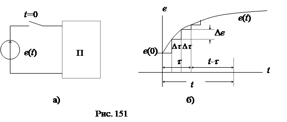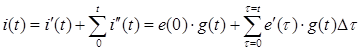 . Ток на выходе цепи в произвольный момент времени t можно рассматривать в соответствии с принципом наложения как сумму частичных токов, возникающих под действием отдельных скачков ЭДС, следующих друг за другом через промежутки