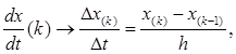 В дифференциальных уравнениях дифференциалы функций заменяются их конечными приращениями, а производные функций - отношениями приращений: