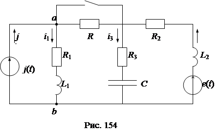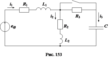 Пример. Рассчитать переходный процесс в схеме рис. 153 с заданными параметрами элементов: