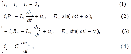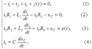 2. Составляется система дифференциальных уравнений по законам Кирхгофа: