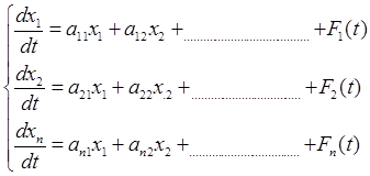 Система уравнений состояния формы Коши решается методом численного интегрирования (метод Эйлера или метод Рунге-Кутта) на ЭВМ по стандартной программе, которая должна быть в пакете стандартных программ. При отсутствии такой программы в пакете она легко может быть составлена по следующему алгоритму (метод Эйлера) для к -го шага: