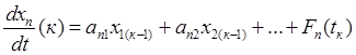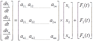 В более узком смысле в математике уравнениями состояния называют систему дифференциальных уравнений 1-го порядка, разрешенных относительно производных (форма Коши). Система уравнений состояния в обобщенной форме имеет вид: