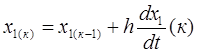 Для определения значений переменных и их производных на 1-м шаге интегрирования используются их значения на момент t =0, т.е. их начальные условия