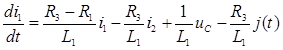 По законам Кирхгофа для схемы после коммутации составляется система дифференциальных уравнений:
