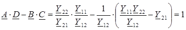 Выразим соотношение между коэффициентами четырехполюсника: