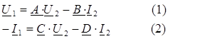 U 1 = A · U 2 - B · I 2 (1)