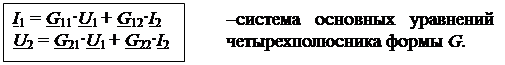 Кроме названных форм уравнений четырехполюсника А и В применяются на практике еще четыре формы, а именно формы Z, Y, H и G. Структура этих уравнений приведена ниже: