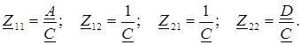 Сравнивая полученные выражения с уравнениями четырехполюсника формы Z, находим соотношения между коэффициентами двух форм: