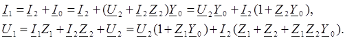 Установим соотношения между коэффициентами четырехполюсника A, B, C, D и параметрами элементов схем замещения.