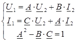 Данная форма уравнений четырехполюсника используется в теории цепных схем и в теории электрических фильтров.