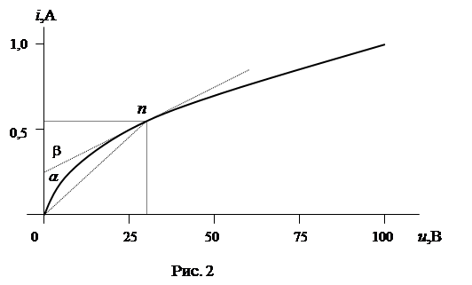 1) графической диаграммой функции y=f (x) с указанием масштабов физических величин по координатным осям, например, для нелинейного резистора ВАХ u=f (i)показана на рис. 2;