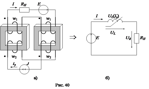 Магнитный усилитель состоит из двух одинаковых управляемых катушек (рис. 40а):