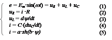 Система дифференциальных уравнений, составленных для схемы цепи по законам Ома и Кирхгофа и дополненная нелинейным алгебраическим уравнением аппроксимации характеристики нелинейного элемента будет иметь вид: