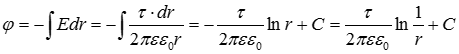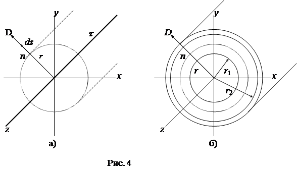 1) Поле уединенной равномерно заряженной оси (рис. 4а).