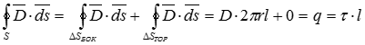 Pасчет параметров поля в произвольной точке n выполним с помощью теоремы Гаусса в интегральной форме. Окружим ось цилиндром с произвольным радиусом r и длиной образующей l =1. Вектор электрического смещения