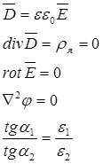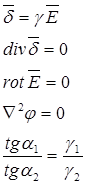 | Электрическое поле постоянного тока | Электростатическое поле при отсутствии зарядов (r св=0) |