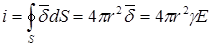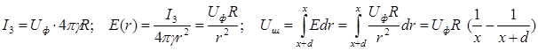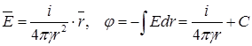 Заменим суммарный ток, стекающий с поверхности заземлителя точечным током i, который растекается из центра заземлителя. Применим расчетные формулы из теории электростатического поля точечного заряда, заменив