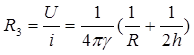 Пример 2. Заземлитель в виде шара расположен на сравнительно небольшой глубине h, соизмеримой с его радиусом R (рис. 17).