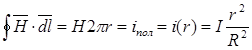 Для расчета поля во внутренней области выберем контур интегрирования в виде окружности с текущим радиусом r < R. Тогда ток внутри контура интегрирования: