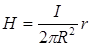 Для расчета поля во внешней области выберем контур интегрирования в виде окружности с текущим радиусом r > R. Ток внутри контура интегрирования равен I и не зависит от текущего значения радиуса r. Из закона полного тока следует:
