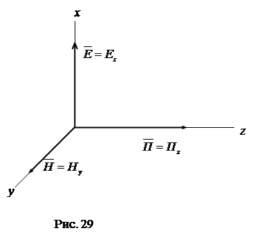 , тогда вектор Пойтинга будет направлен вдоль оси z (рис. 29):