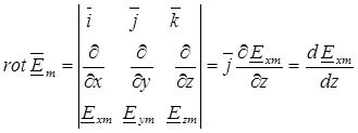 Раскроем операцию rot в декартовой системе координат и учтем, что векторы поля содержат только по одной пространственной составляющей: