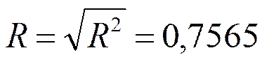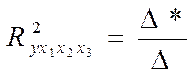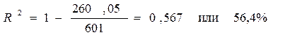 Множественный коэффициент детерминации характеризует отношение части вариации результативного признака, объясненного за счет вариации, входящей в уравнение факторов к общей вариации результативного признака за счет всех факторов.