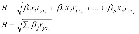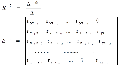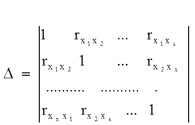 На основе матрицы вычисляется наиболее показатель тесноты связей всех водящих в уравнение регрессии факторов с результативным признаком, т.е. коэффициент множественной детерминации, который определяется как частное от