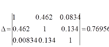 Подставляя значения из матрицы парных коэффициентов корреляции произведем расчеты