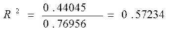 т.о. 56,7 % вариации у определяется вариацией трех факторов, включенных в модель.