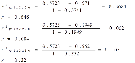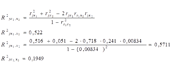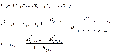 Отсюда имеем частичные коэффициенты детерминации