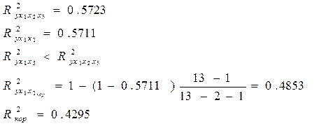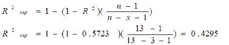 В связи с этим необходимо корректировать коэффициент множественной детерминации на потерю степеней свободы вариации.