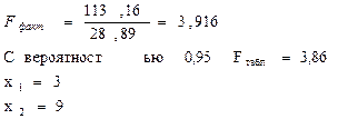 t при вероятности 0,95 и степенях свободы вариации n – x – 1 составляет 2,262. Т.к. tфакт > tтабл. Связь надежная и коэффициент множественной корреляции является статистически надежным.