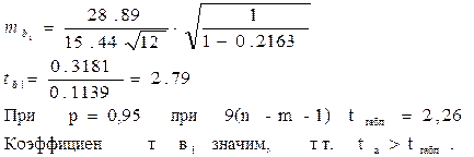 Проверка значимости коэффициентов условно чистой регрессии bj. Найдем среднюю ошибку репрезентативности выборочной оценки mb.