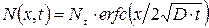 Под глубиной диффузионного слоя (глубиной диффузии) понимают координату х=LN при которой концентрация введенной примеси N равна концентрации исходной примеси N0 (рис. 3.2). Величину LN нетрудно найти из выражений (3.10), полагая в левой части N = N0.