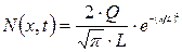 2. Случай ограниченного источника примеси. В этом случае сначала в тонкий приповерхностный слой пластины вводят некоторое количество атомов диффузанта, а потом источник диффузанта отключают и атомы примеси перераспределяются по глубине пластины при неизменном их общем количестве. Первую стадию процесса называют «загонкой», вторую – разгонкой примеси.