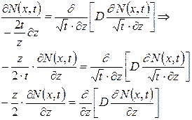 представляет собой одномерное уравнение диффузии с коэффициентом диффузии, зависящим от концентрации диффузанта. В тех случаях, когда D зависит только от концентрации диффузанта N и поверхностная концентрация поддерживается на постоянном уровне, уравнение (3.5) может быть преобразованно в обычное дифференциальное уравнение с новой переменной