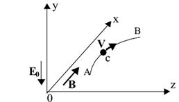 В произвольной точке с траектории А - В на электрон, движущийся со