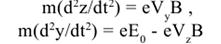 В выбранной системе координат уравнение движения электрона можно записать как: