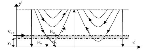 силовые линии электромагнитного поля волны неподвижны, поэтому при рассмотрении взаимодействия электронов с СВЧ полем можно воспользоваться выводами, сделанными ранее для стационарных полей.