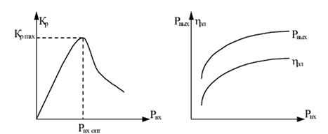 3. Амплитудная характеристика. Зависимости коэффициента усиления (Кр), выходной мощности (Рвих) и коэффициента полезного действия (hэл) от входной мощности (Рвх) показаны на рис. 8.