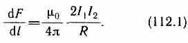 Если два параллельных проводника с током находятся в вакууме (m=1), то сила взаимодействия на единицу длины проводника, согласно (111.5), равна